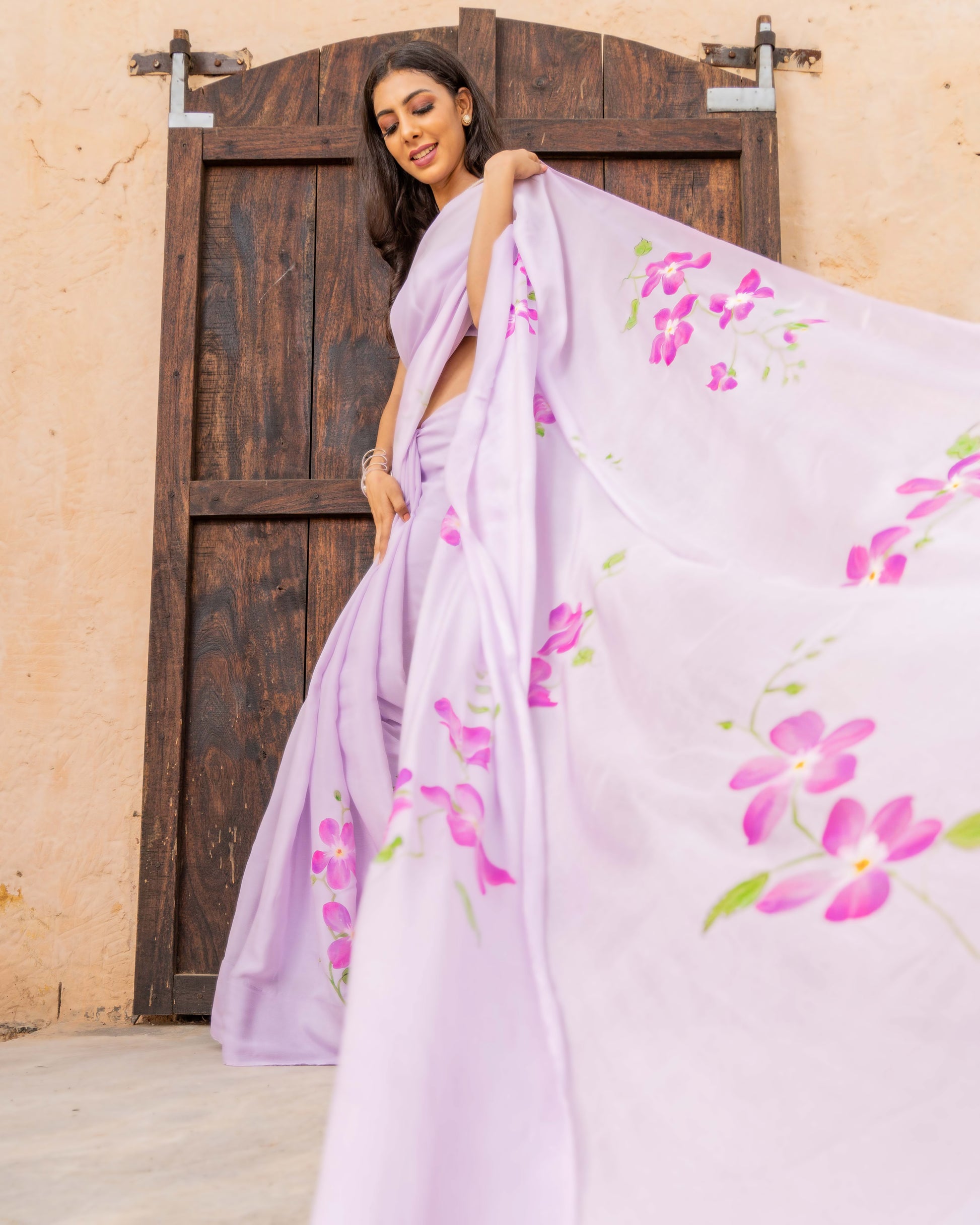Sanjoni Hand-painted & Hand-embroidered Saree