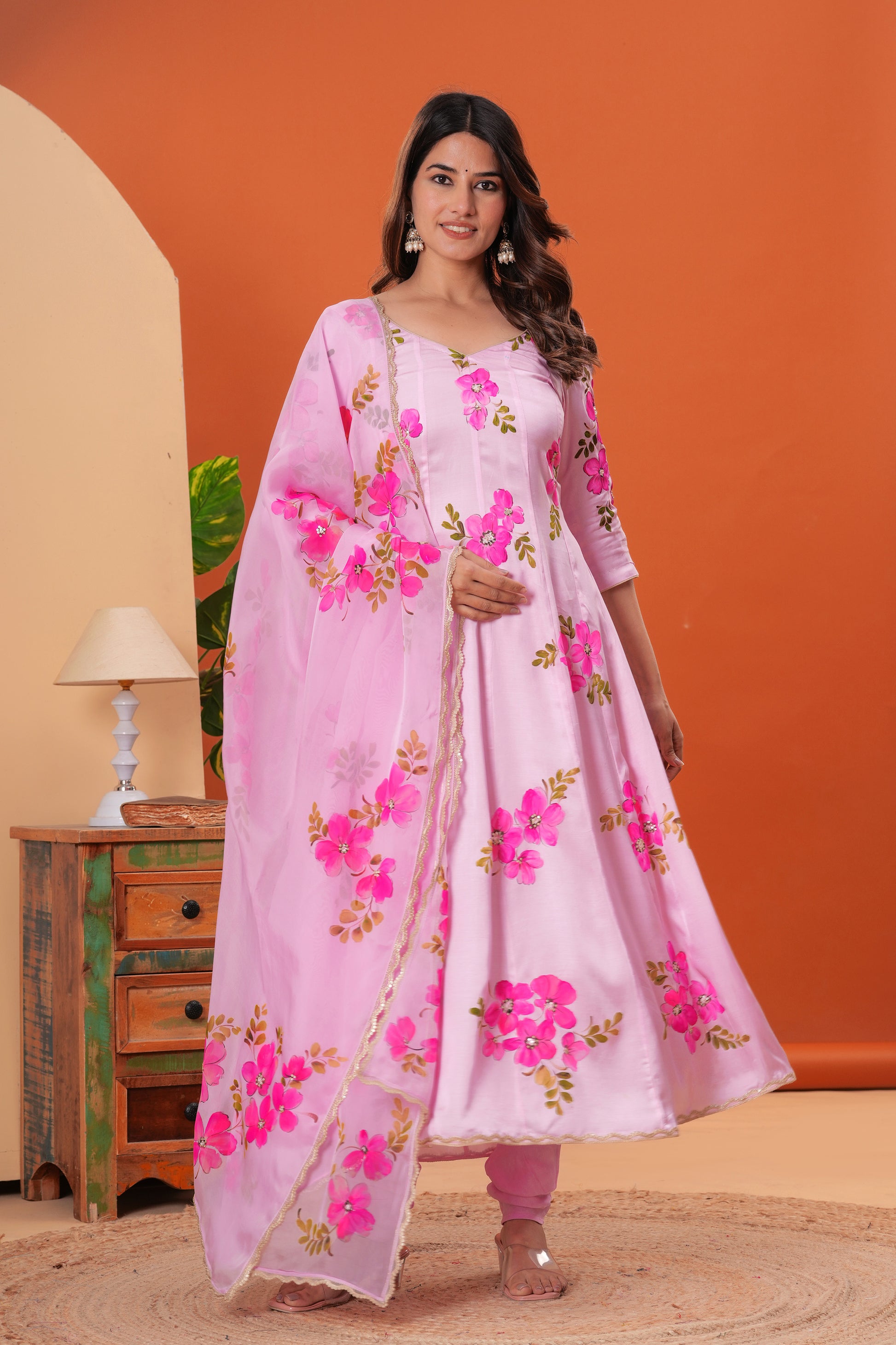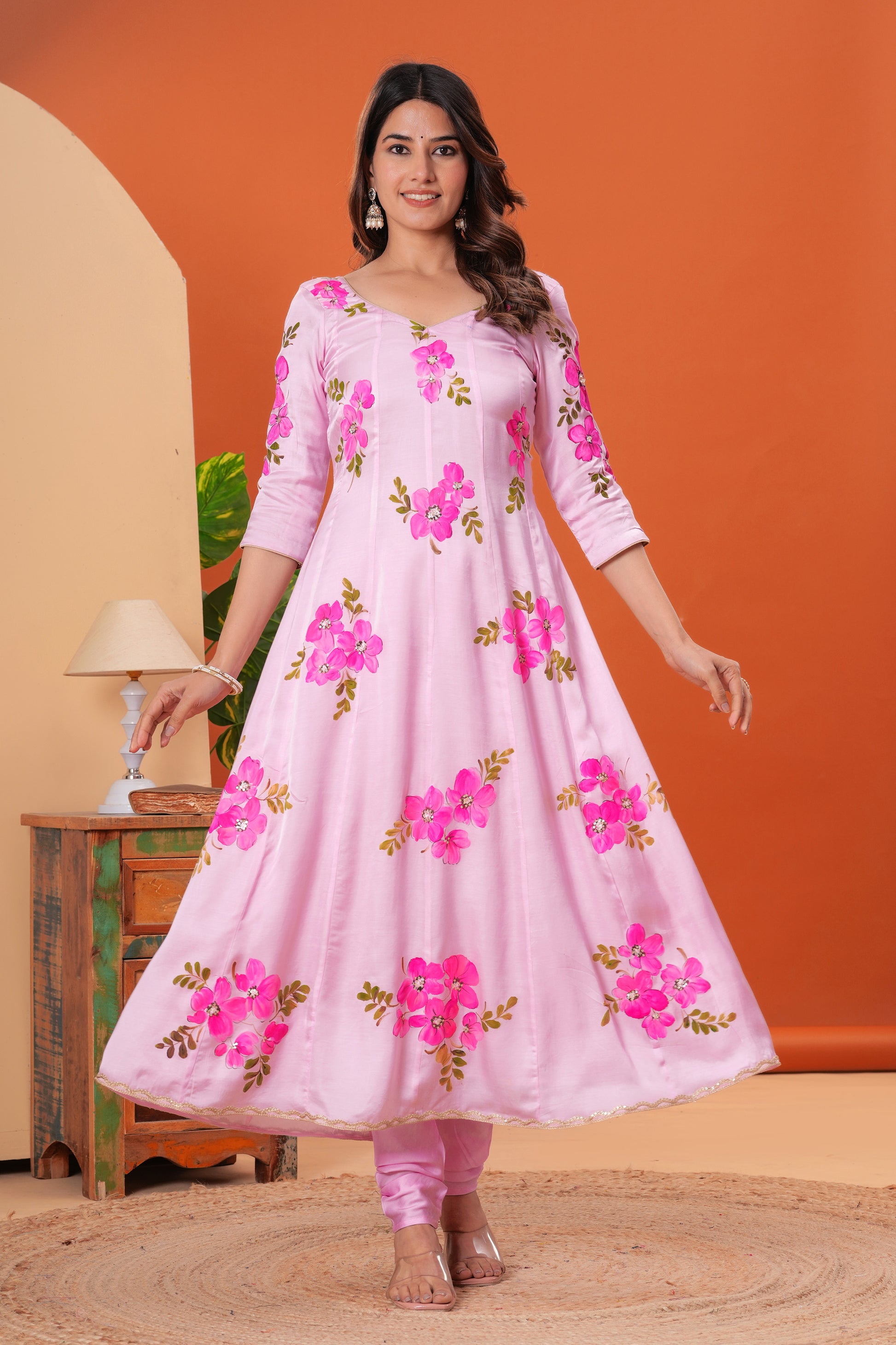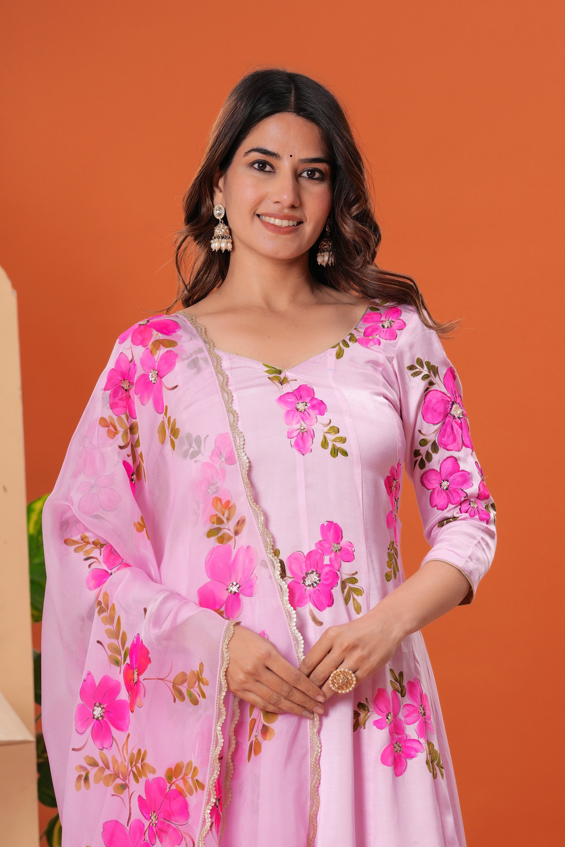 BLUSH BLOOM HAND-PAINTED ANARKALI