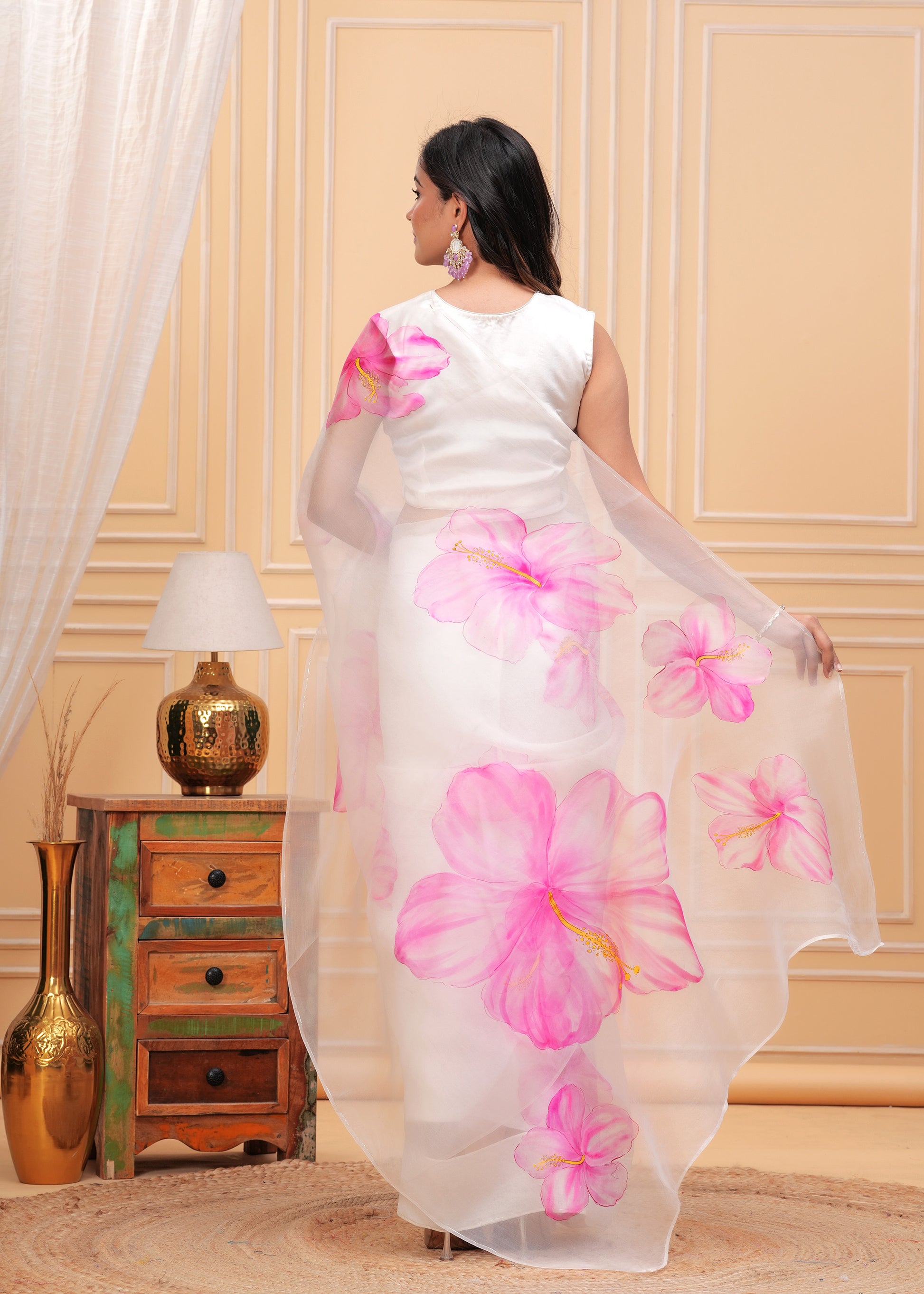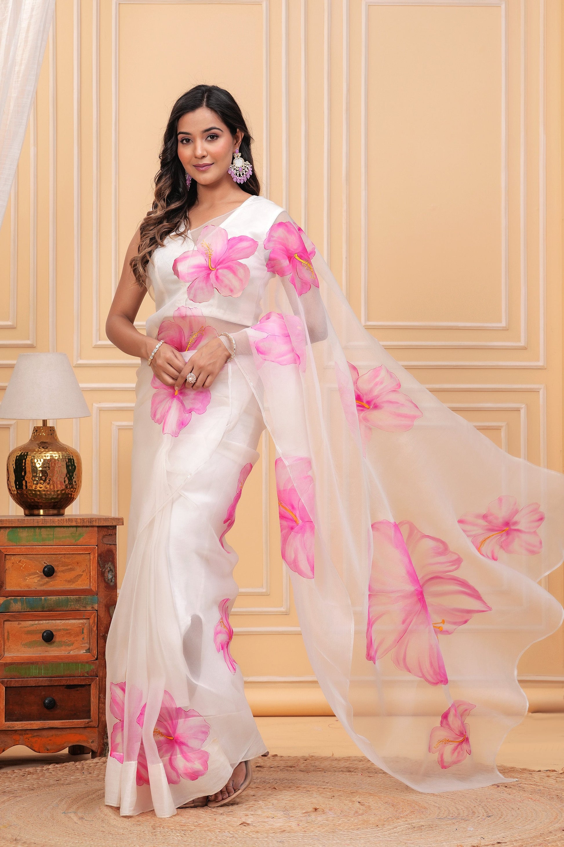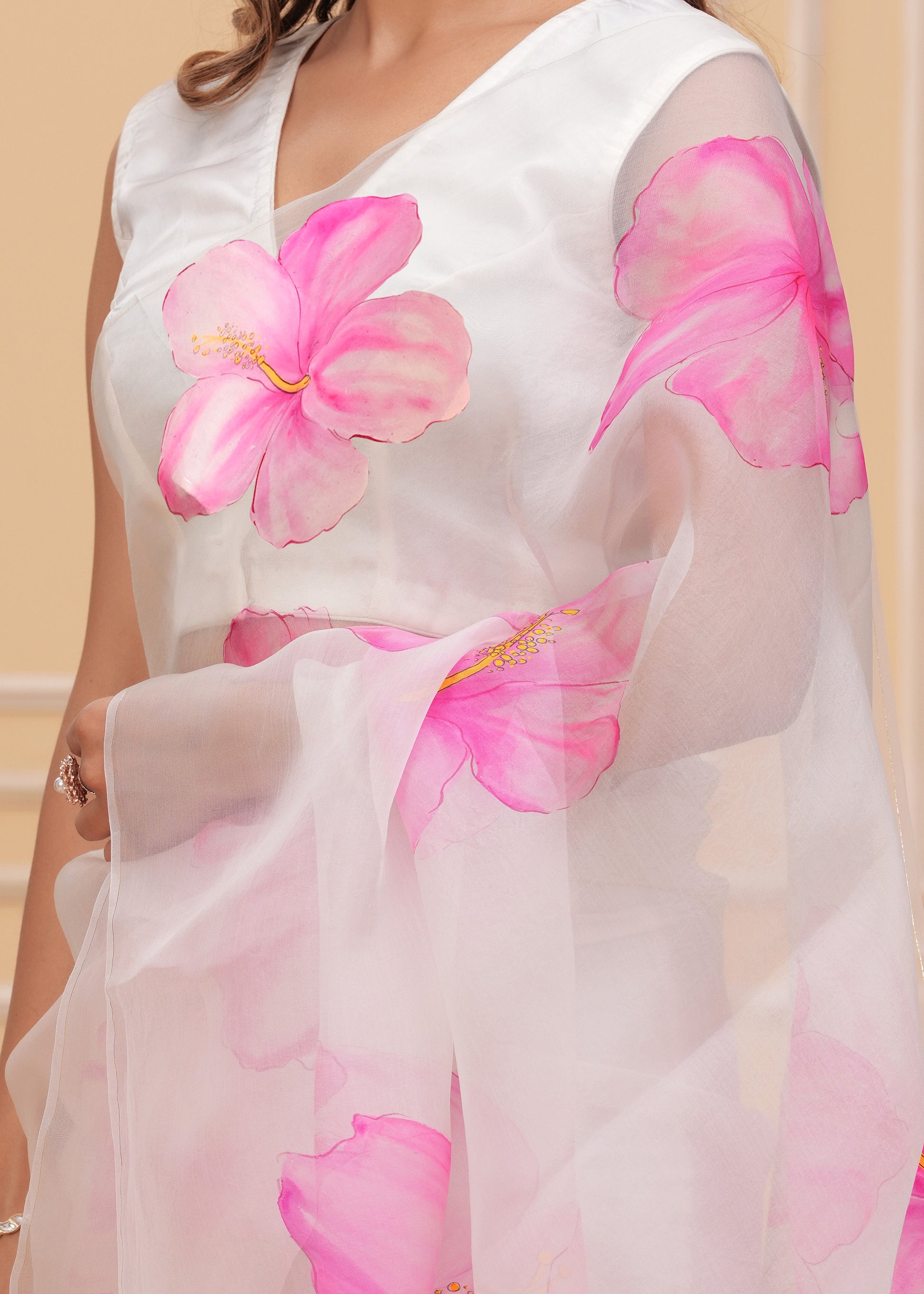 Sanjoni Hand-painted & Hand-embroidered Saree