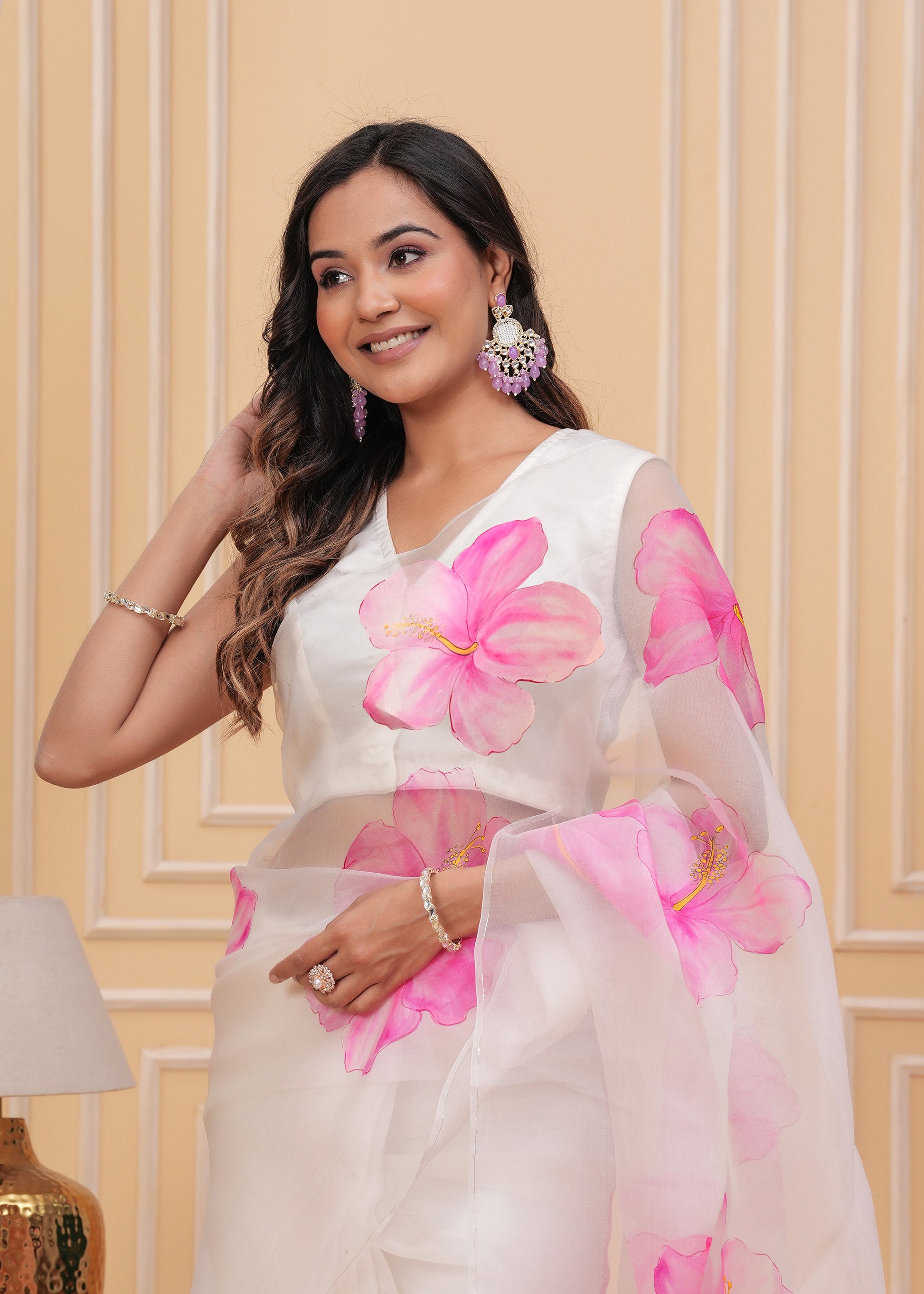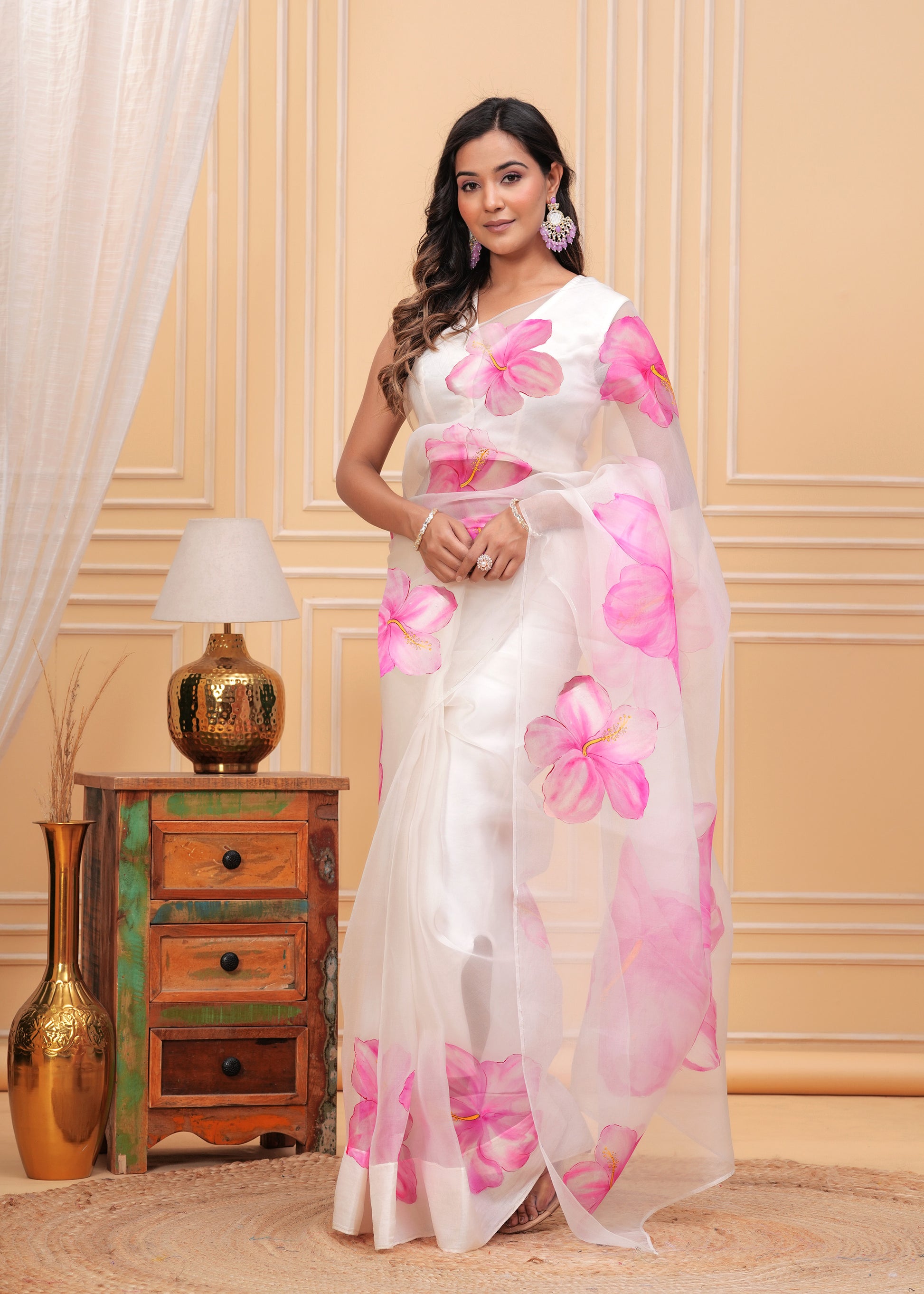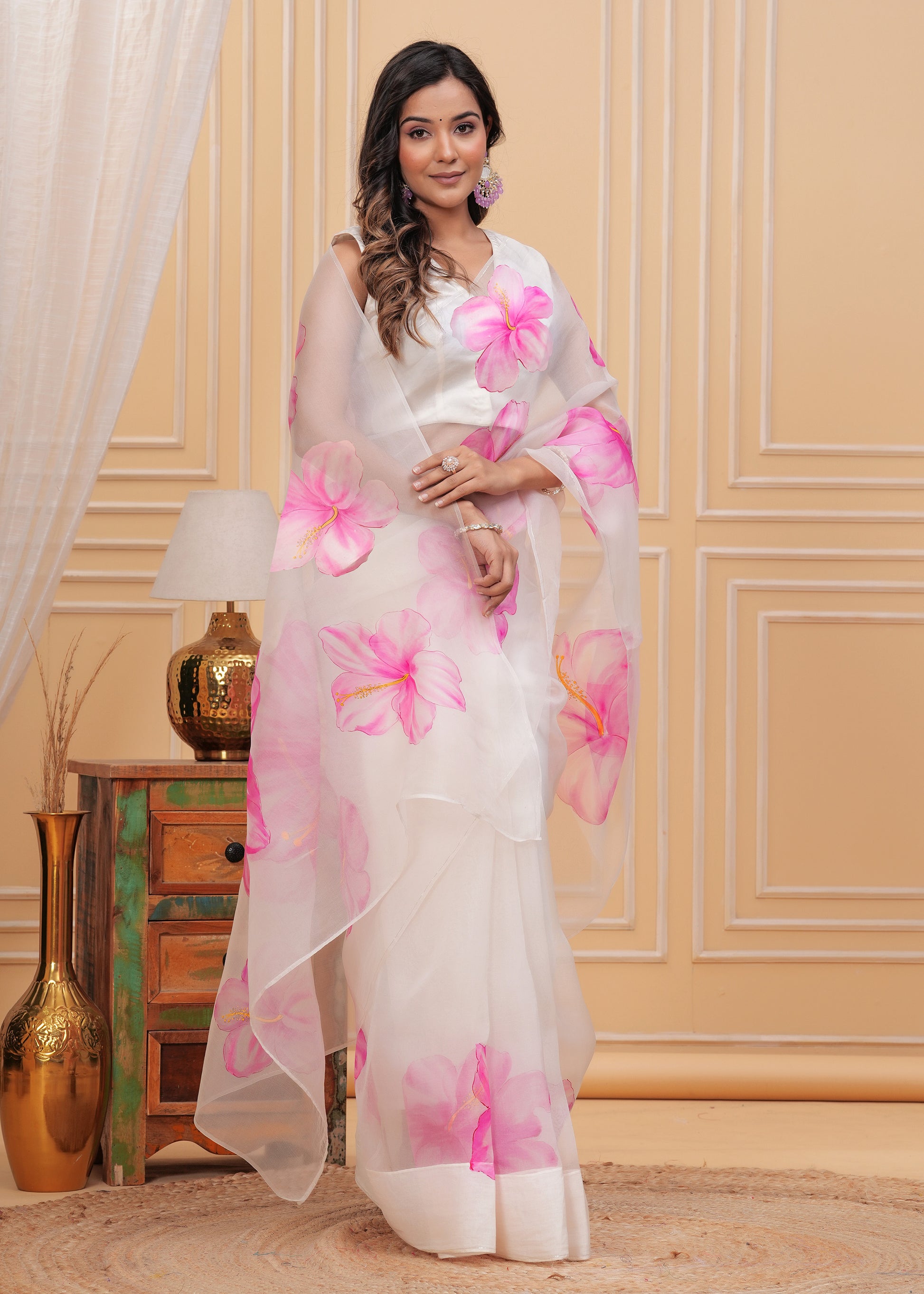 Sanjoni Hand-painted & Hand-embroidered Saree