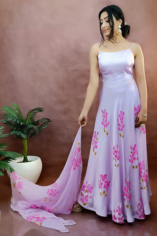 HAND PAINTED LAVENDER ANARKALI GOWN