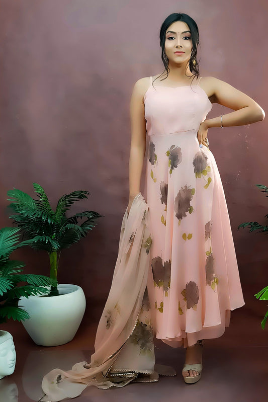 BLUSH BLOOM HAND-PAINTED ANARKALI