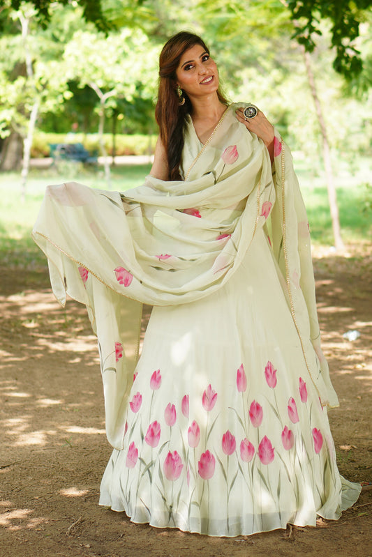 40% OFFSTAR FLOWER ORGANZA ANARKALI