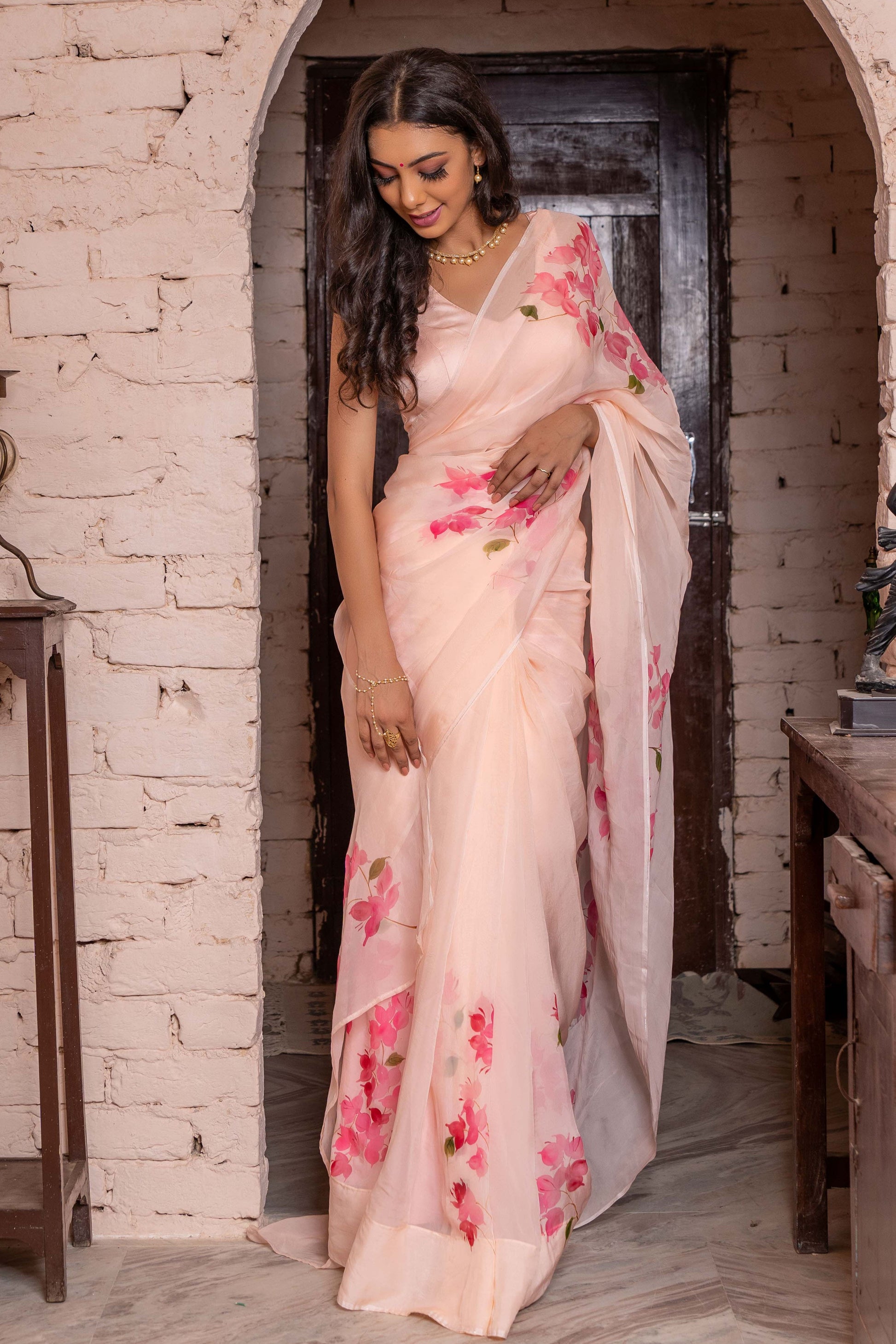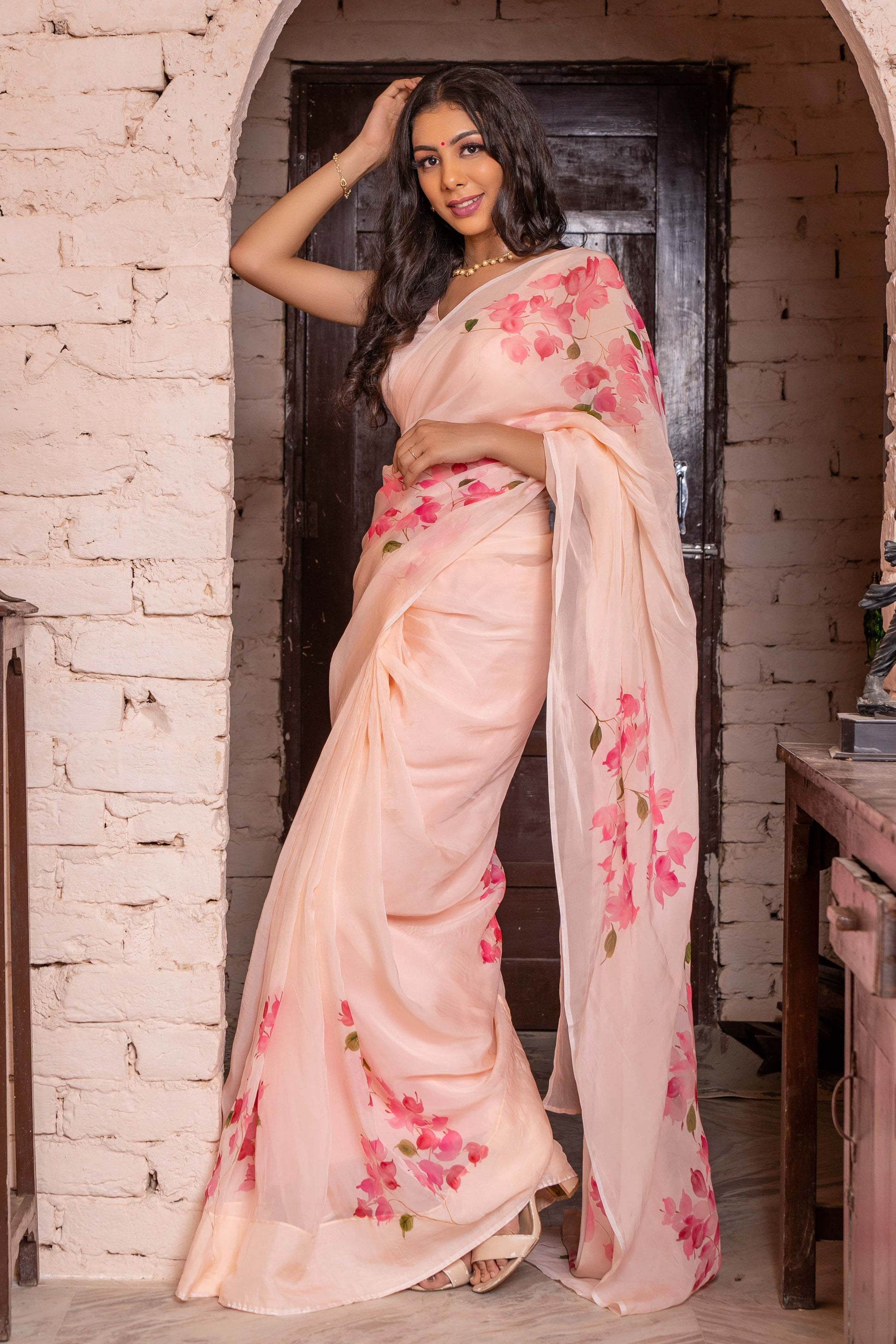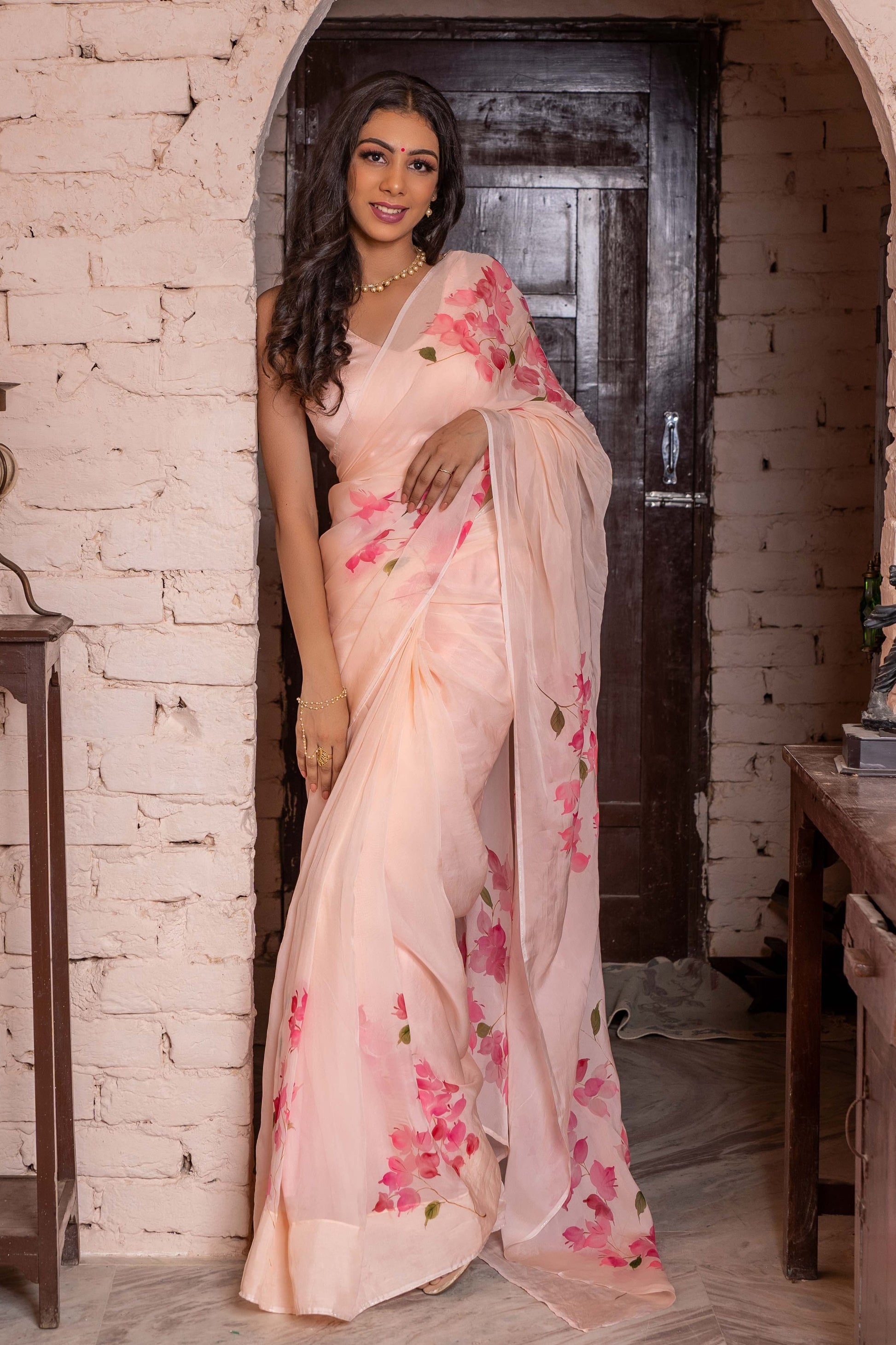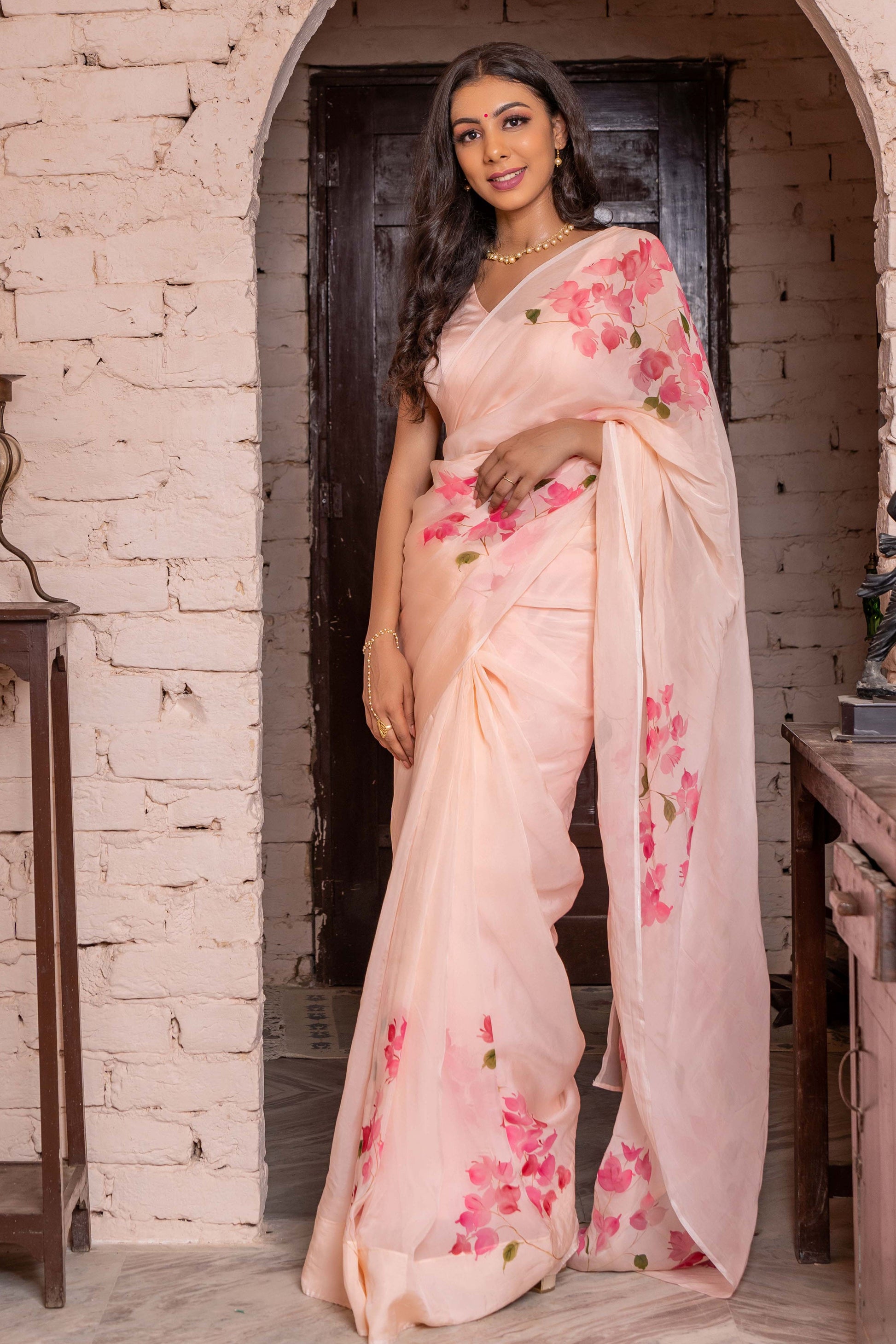 Sanjoni Hand-painted & Hand-embroidered Organza saree.