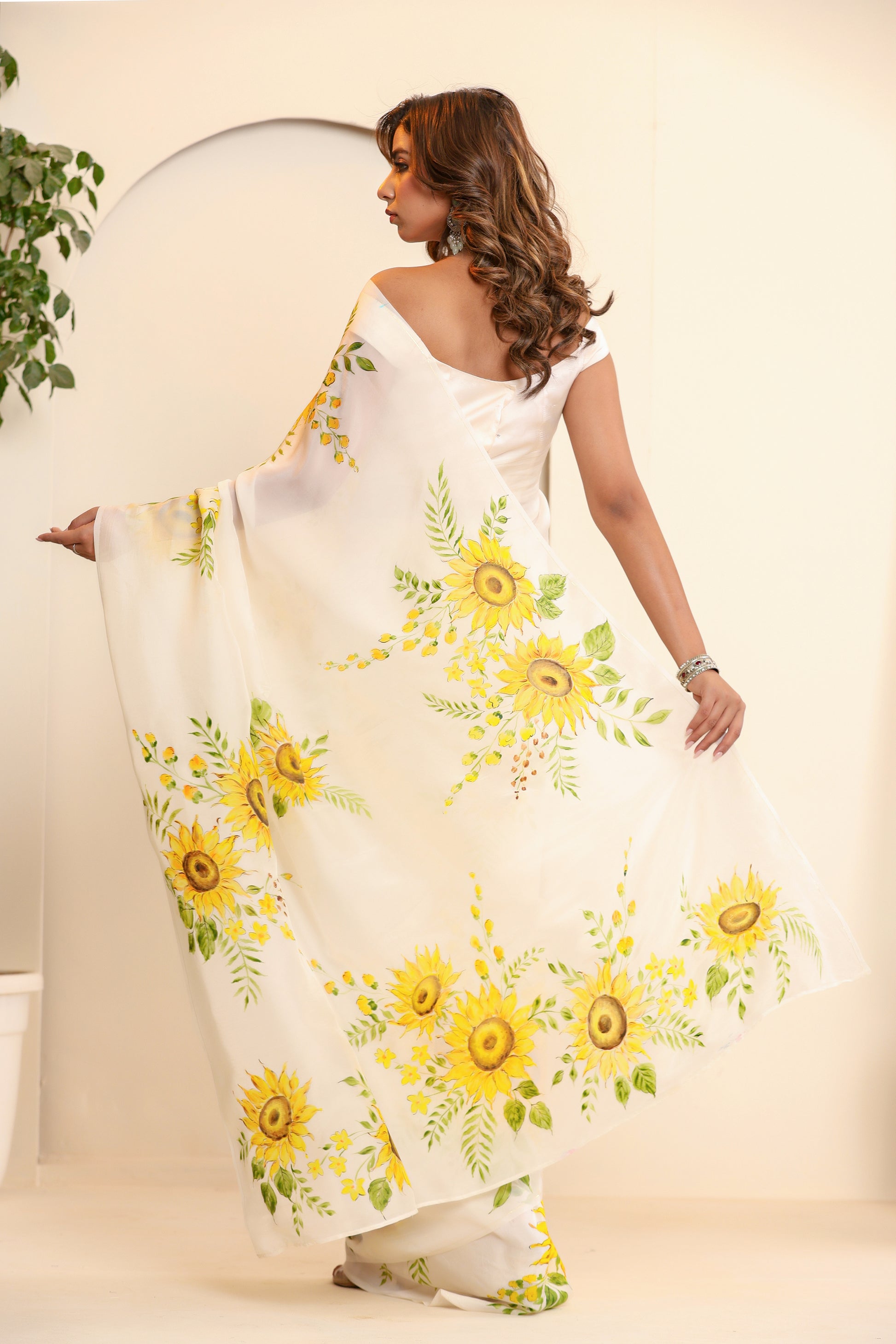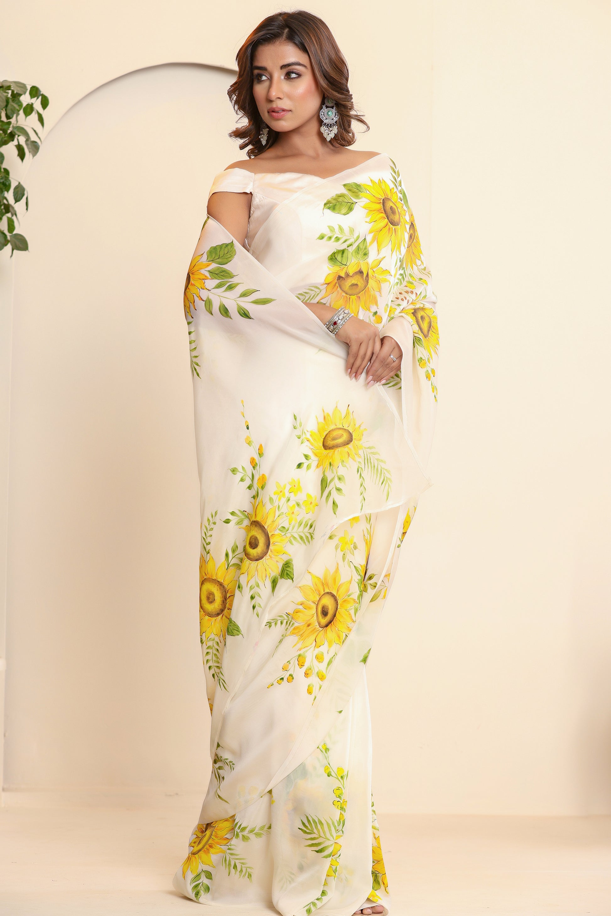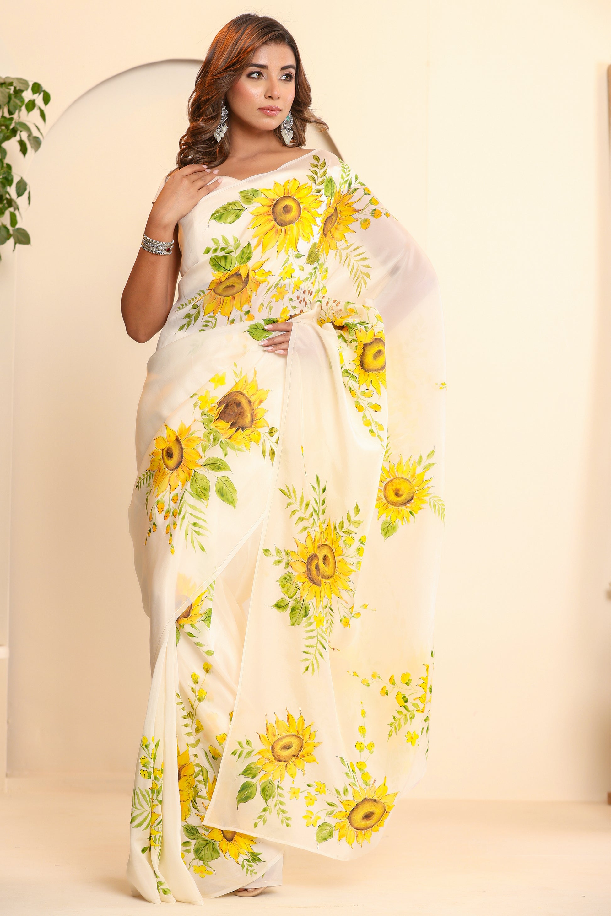 Sanjoni Hand-painted & Hand-embroidered Organza saree.