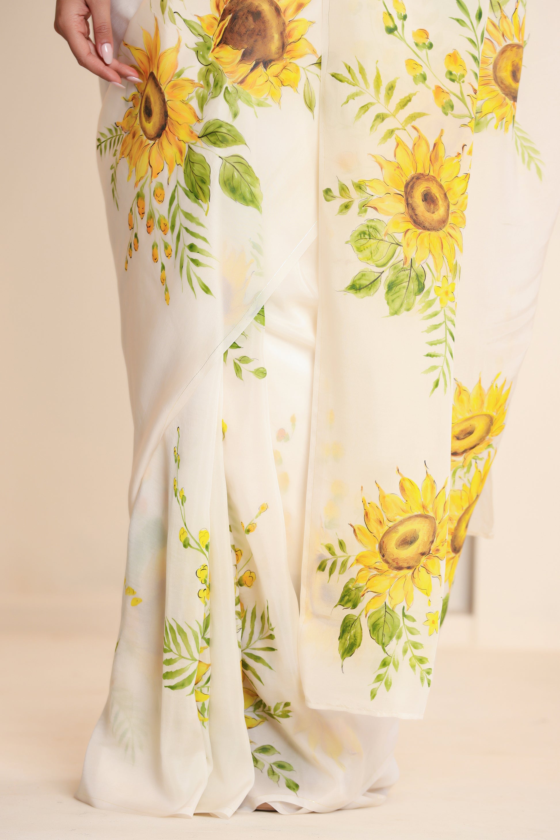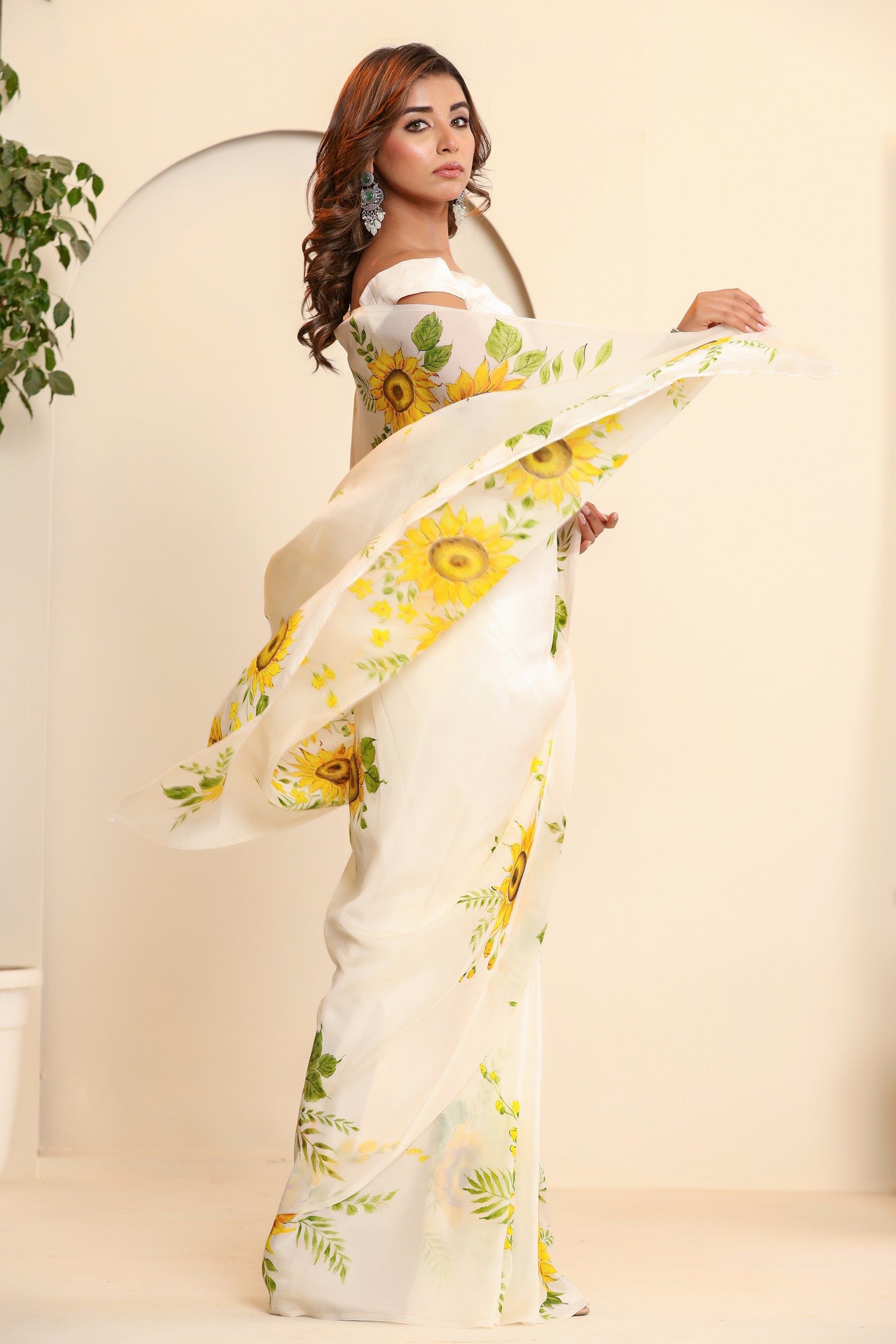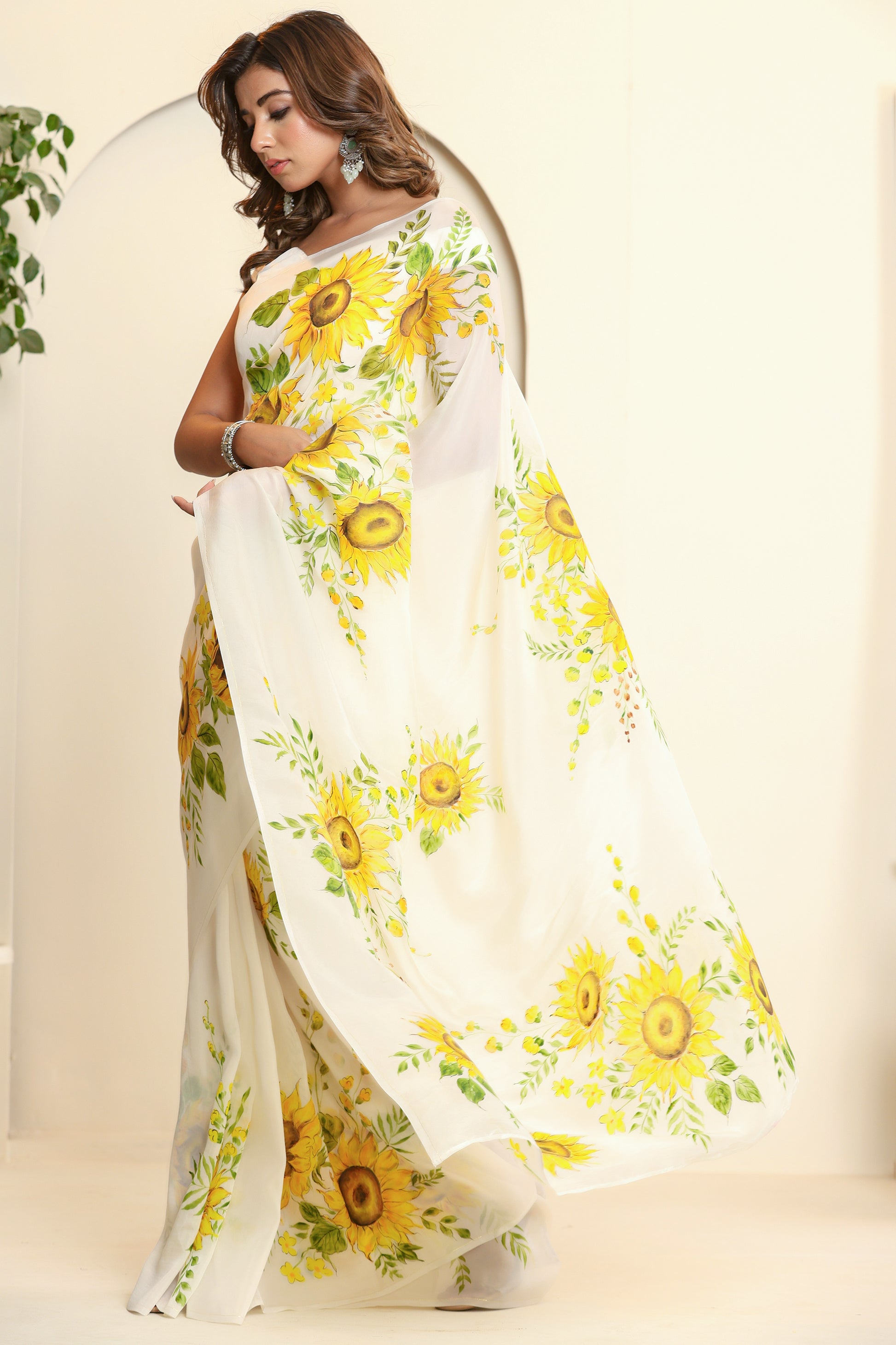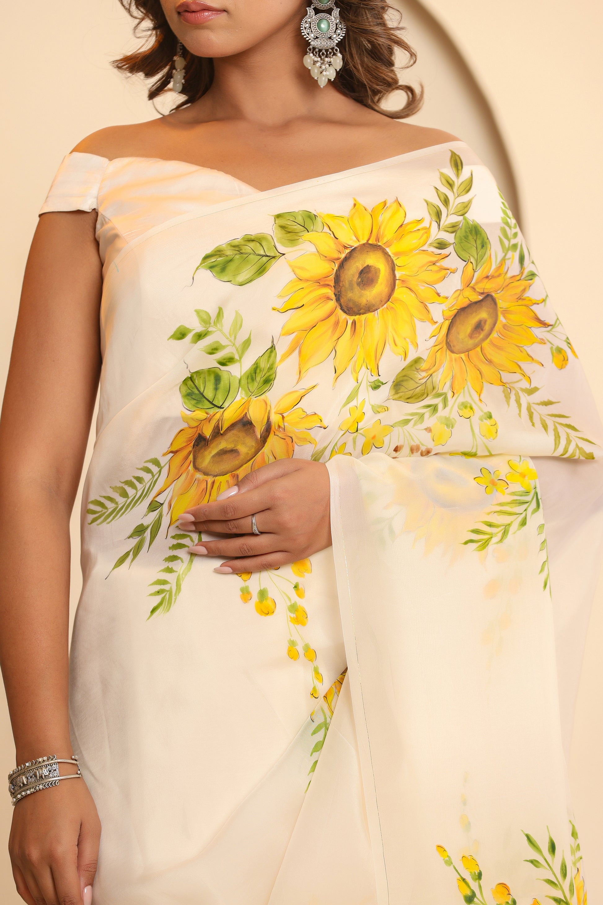Sanjoni Hand-painted & Hand-embroidered Organza saree.