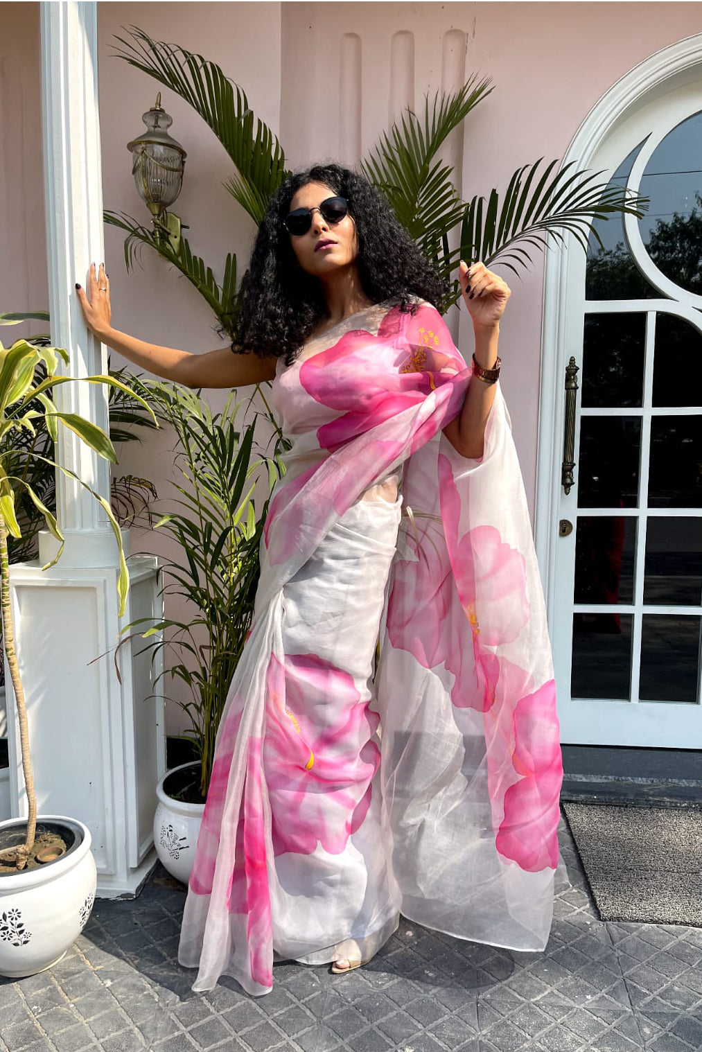 GREY GRAND HIBISCUS ORHANZA SAREE