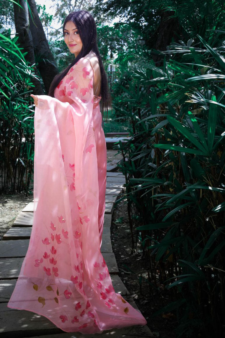 Sanjoni Hand-painted & Hand-embroidered Organza saree.