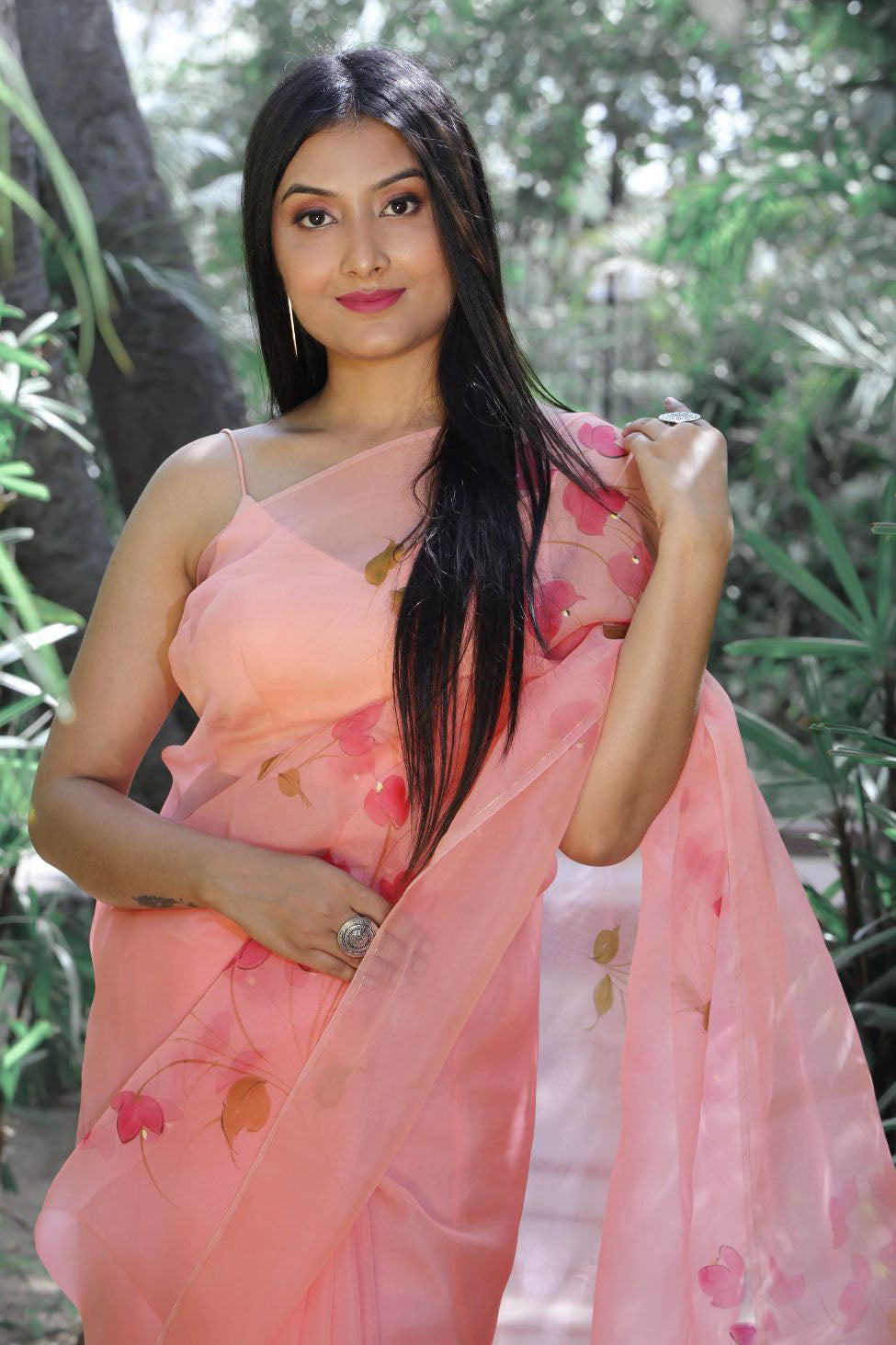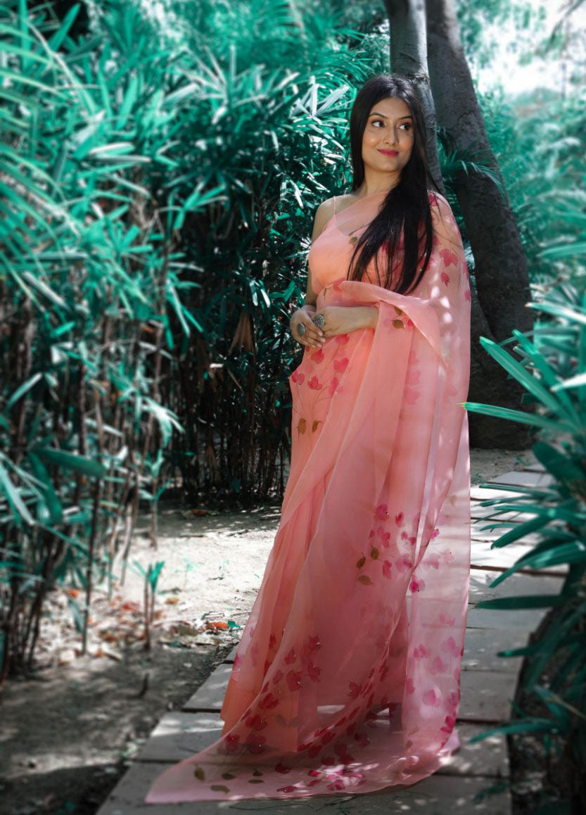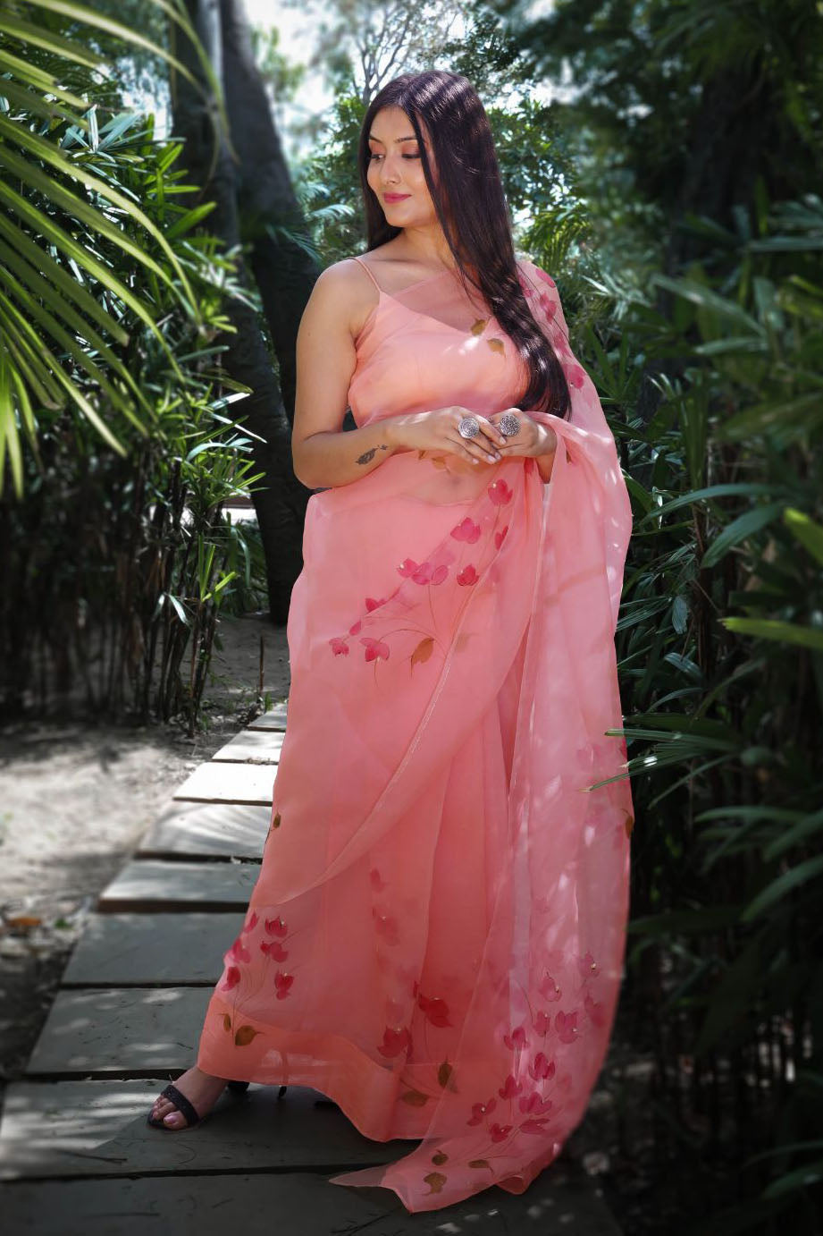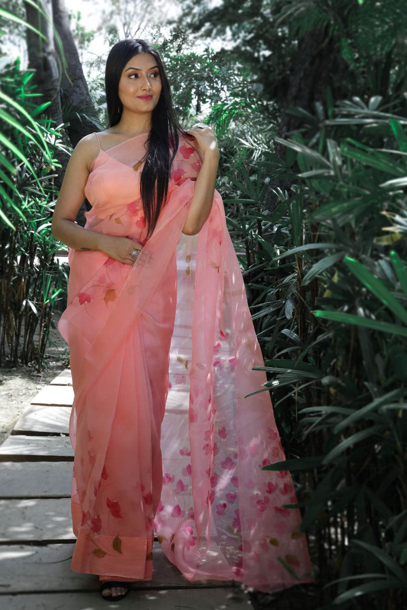 PEACH BOUGAINVILLEA ORGANZA SAREE