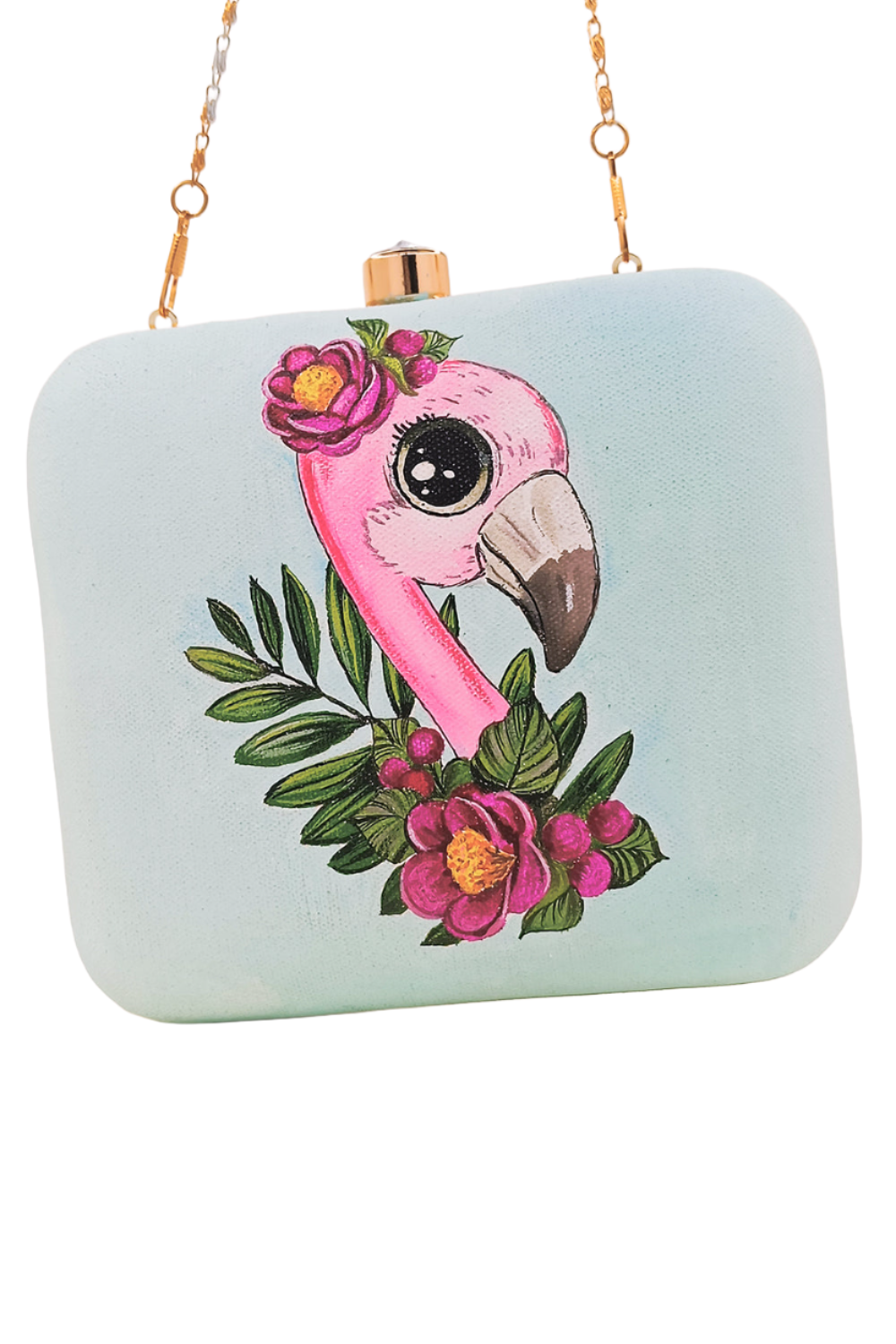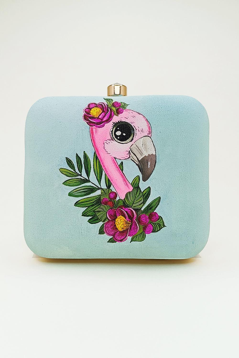 HAND PAINTED FLAMINGO CLUTCH