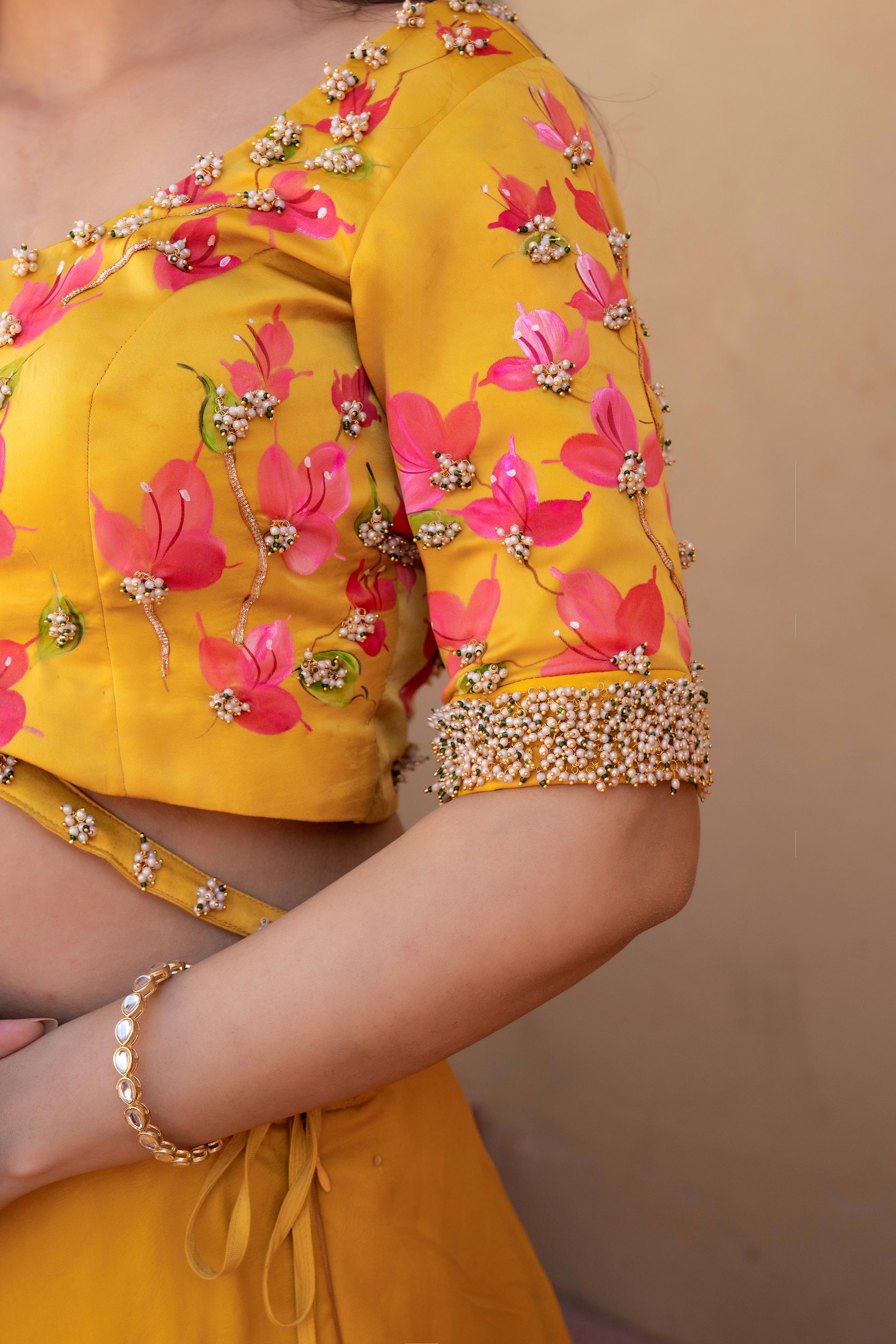 Exclusive hand-painted bougainvillea floral motifs