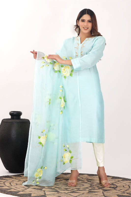 HAND PAINTED WHITE ROSE STRAIGHT SUIT