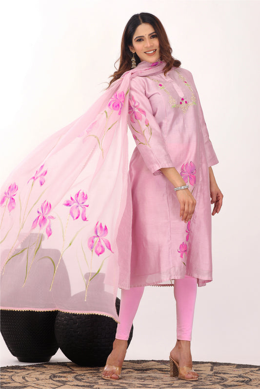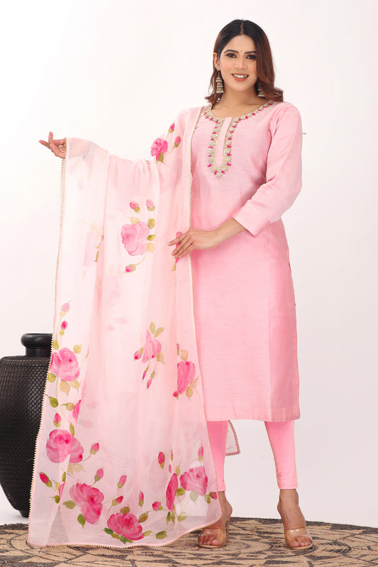 HAND PAINTED PINK ROSE STRAIGHT SUIT