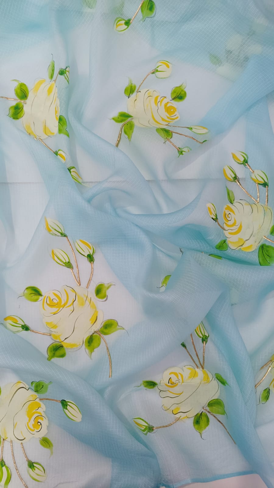HAND PAINTED WHITE ROSE STRAIGHT SUIT
