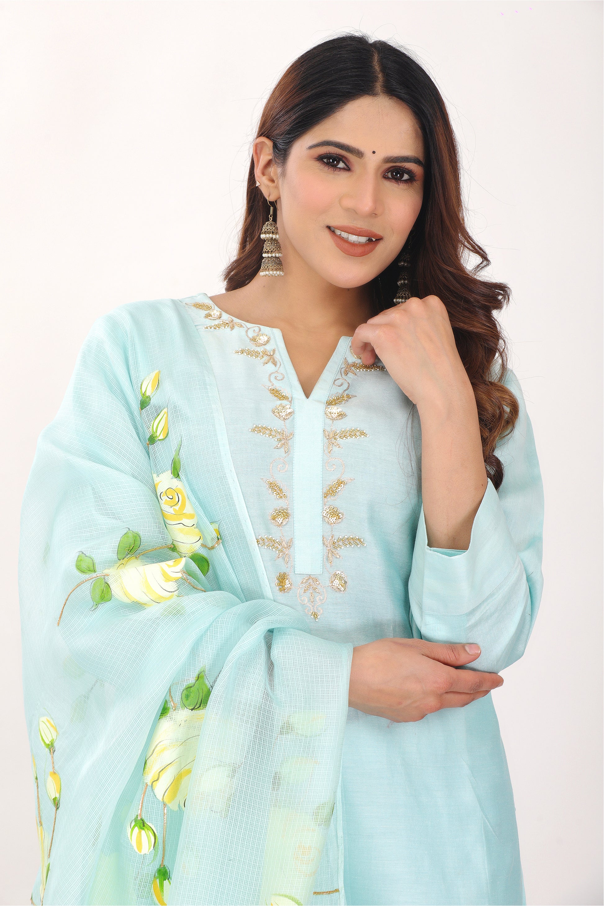 Sanjoni HAND PAINTED HAND EMBROIDERED STRAIGHT SUIT